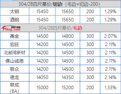从报价来看,市场多次调涨报价后,整体累计涨200-300元/吨。从成交来看,304不锈钢水管市场贸易商反馈出货尚可,如大板的一些较好规格于早上已被“抢走”,个别产地现货有缺,但市场贸易商反馈称,北部湾新材资源在下周有到货,今日订货能优价。看来,市场还是要在涨价的时候才有买卖的动力。另外,青山钢厂虽然未对304热轧启动新盘价,但是有消息称,钢厂允许代理以成本价14300元/吨补点大板现货!